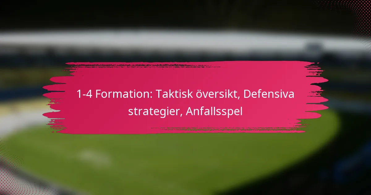 1-4-formationen i fotboll är en taktisk uppställning som har en målvakt och fyra försvarare, vilket prioriterar defensiv styrka samtidigt som den erbjuder flexibilitet för offensiva manövrar. Denna formation förbättrar inte bara defensiva kapabiliteter genom en kompakt enhet utan tillåter också lag att utföra effektiv press och kontringar. Genom att fokusera på rörelsemönster och individuella färdigheter kan lag skapa dynamiska offensiva spel samtidigt som de upprätthåller en solid närvaro på mittfältet.