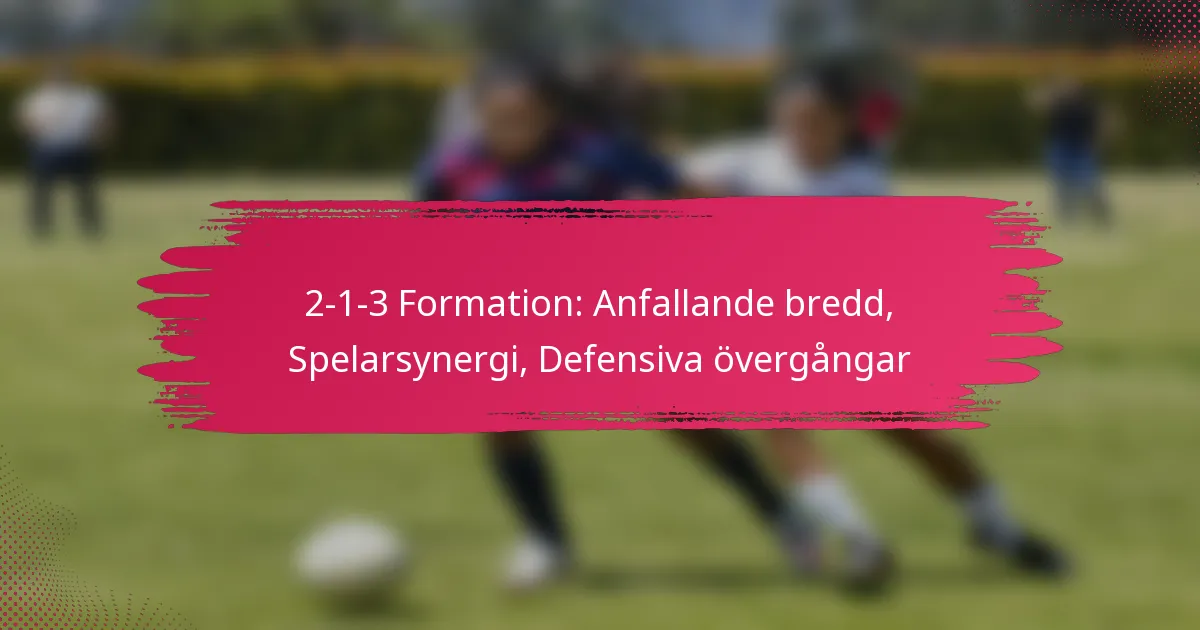 2-1-3-formationen i fotboll är en taktisk uppställning som betonar både offensiv bredd och defensiv stabilitet. Genom att positionera två försvarare, en mittfältare och tre anfallare, tillåter denna formation lagen att sträcka motståndarens försvar och skapa målchanser samtidigt som den underlättar effektiva övergångar mellan anfall och försvar. Spelarsynergi spelar en avgörande roll för att maximera effektiviteten av denna formation, eftersom samarbete och kommunikation mellan lagkamrater förbättrar den övergripande prestationen på planen.