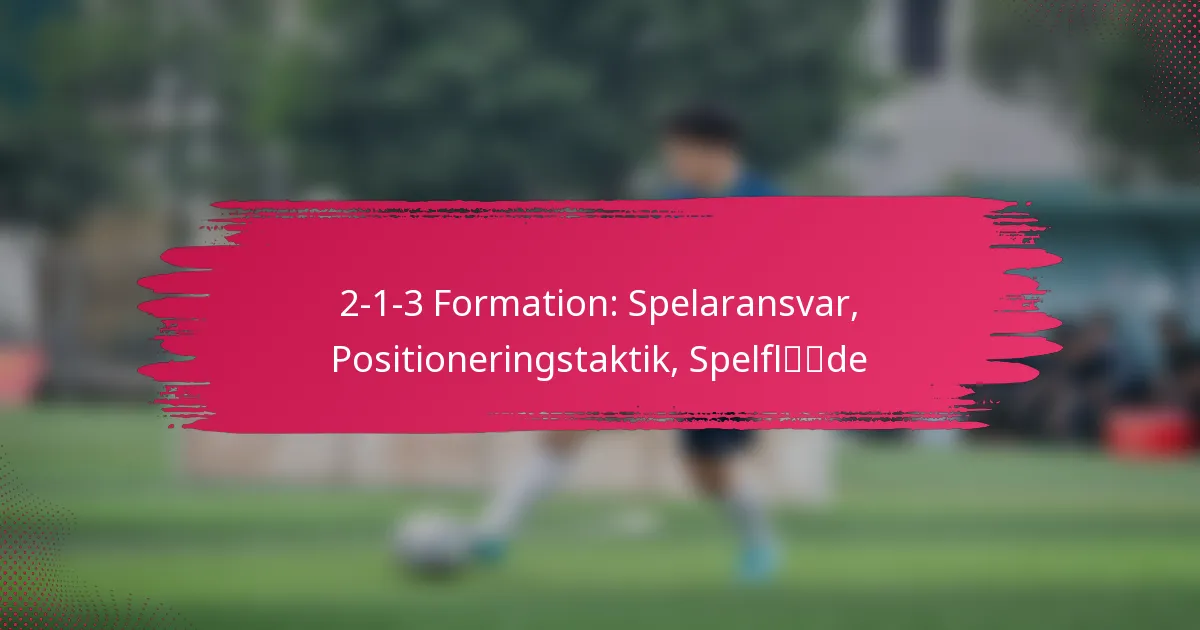 2-1-3-formationen involverar specifika spelaransvar som förbättrar både defensiv stabilitet och offensiv potential. Varje spelare har definierade roller som bidrar till det övergripande lagdynamiken, vilket säkerställer effektiv bollkontroll och kommunikation under spelet.